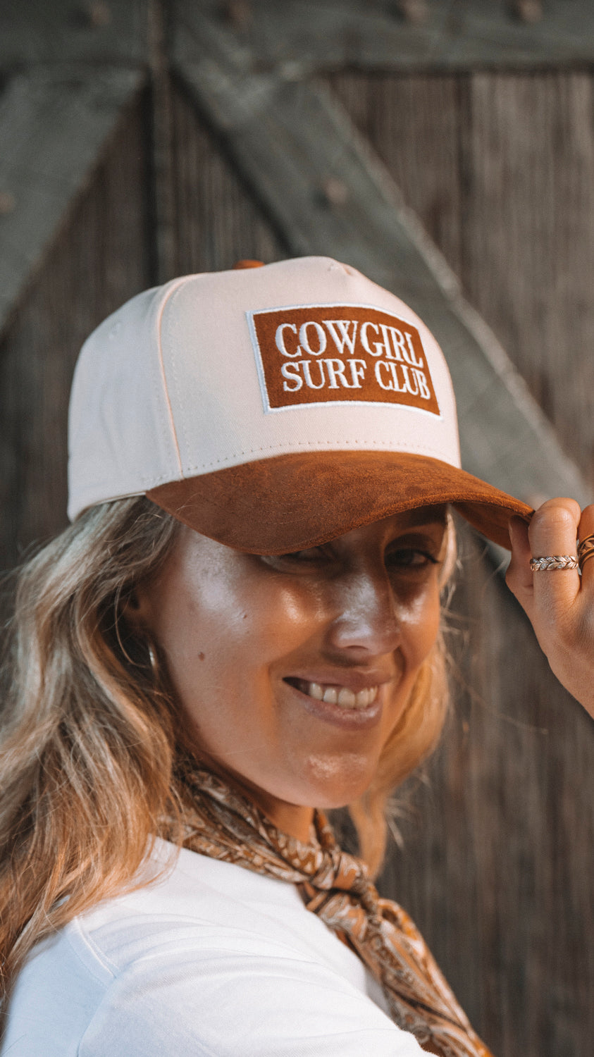 Cowgirl Surf Club Cap is a the cap you never knew you needed for your hat rack. Wear this cap on your horse back beach ride, your country festival, local rodeo or just around town, you coastal cowgirl!