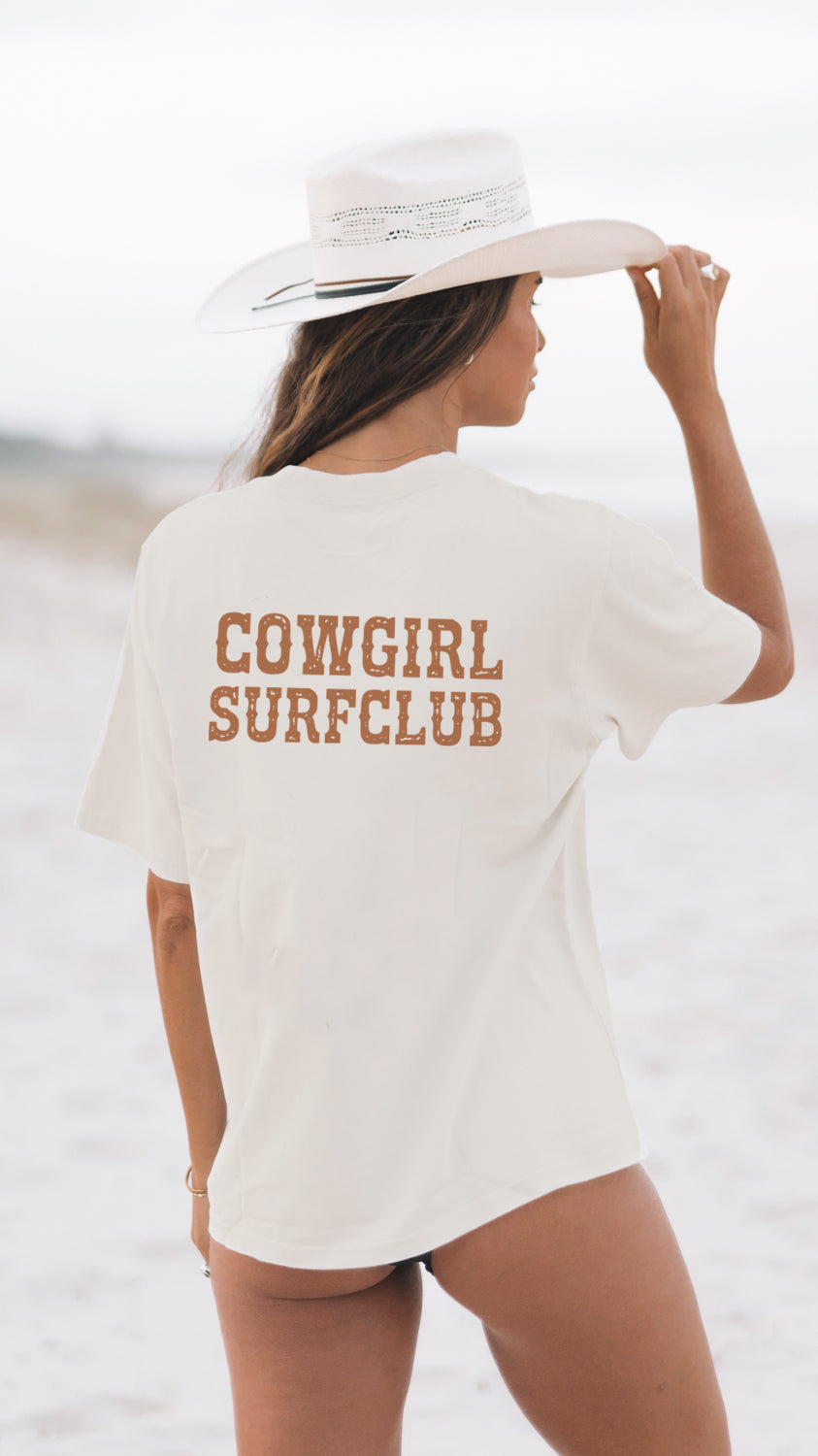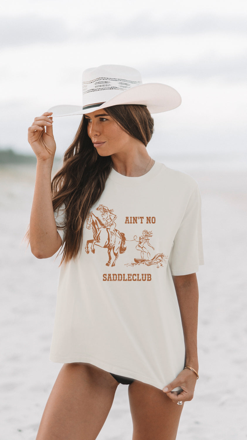 This ain’t no saddle club tee! For those who are country at heart with that coastal soul. If you’re looking for a oversized tee to wear over your swimwear or that boxy fit that’s durable and comfortable—look no further!